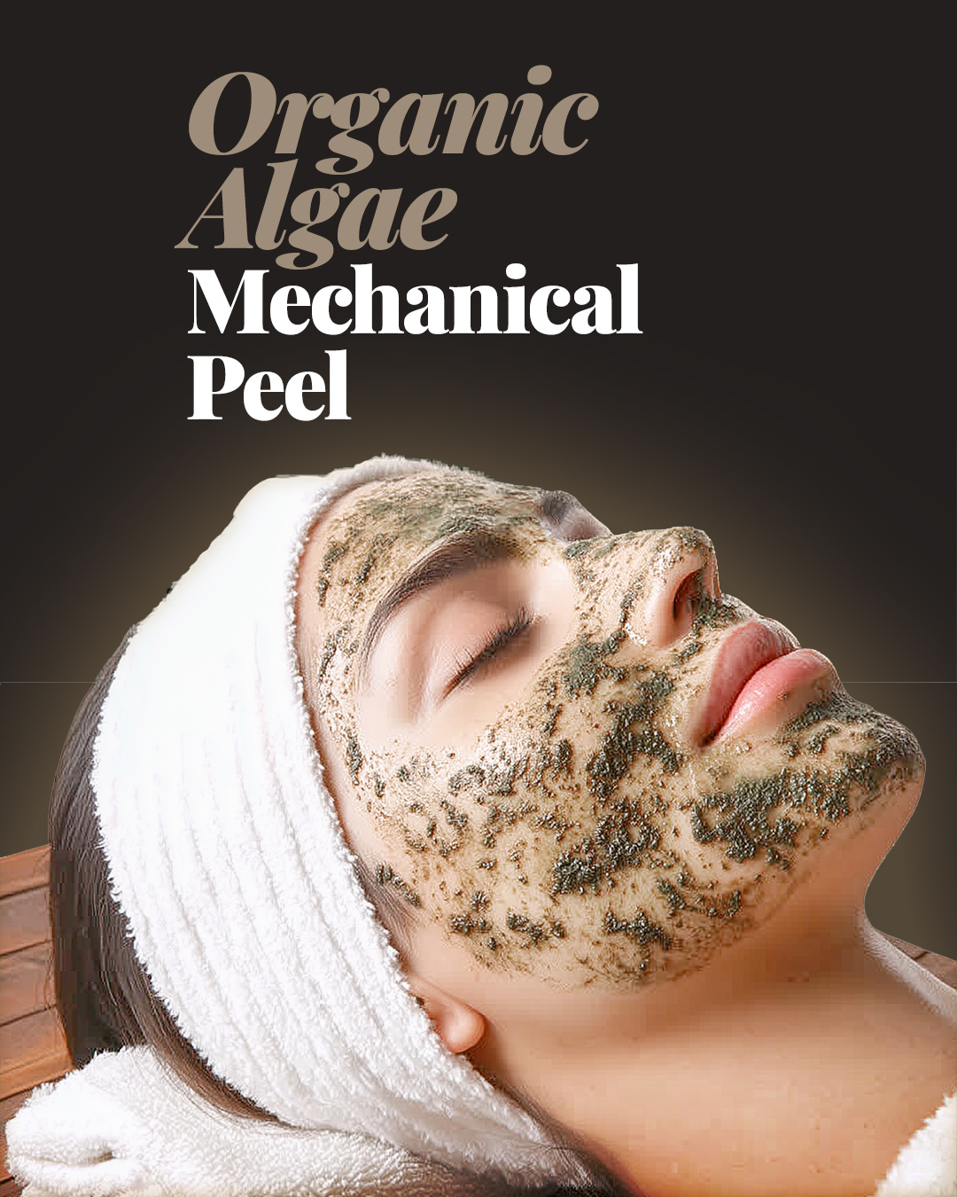 It’s a 100% natural, acid‑free micro‑exfoliation using marine‑derived algae particles that gently buff away dead skin and boost collagen—like a natural alternative to chemical peels with added nutrients and zero harshness.